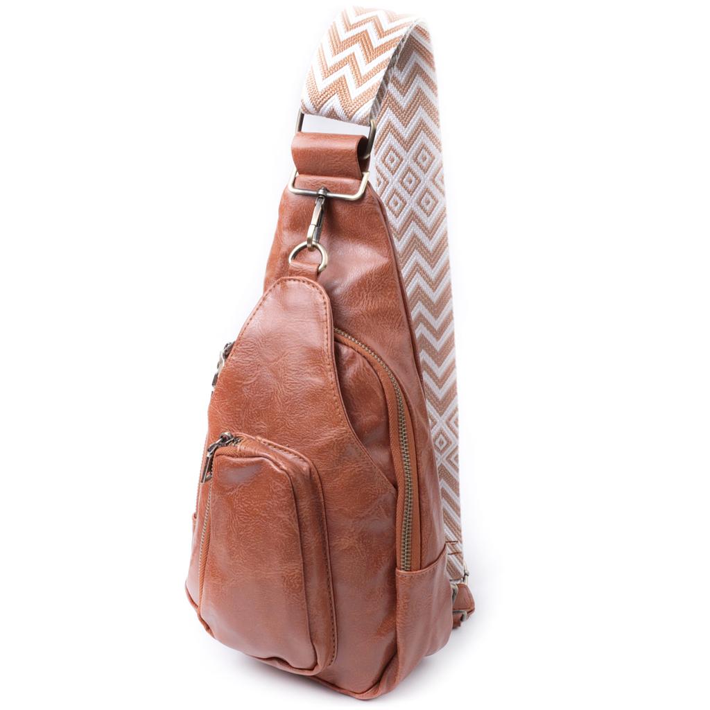 Damska torba z ekoskóry z akcentem na tekstylny pasek VINTAGE Bag 22773 Rudy