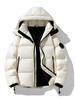 Męska lekka, odpinana kurtka puchowa z kapturem w kolorze białym, ciepła, zimowa, wiatroszczelna