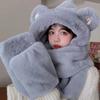 Zimowy prosty, pogrubiony, ciepły, pluszowy szalik, szalik z kapturem typu „wszystko w jednym”, trzy w jednym, słodki miś z uszami, damska, kaptur, maska narciarska