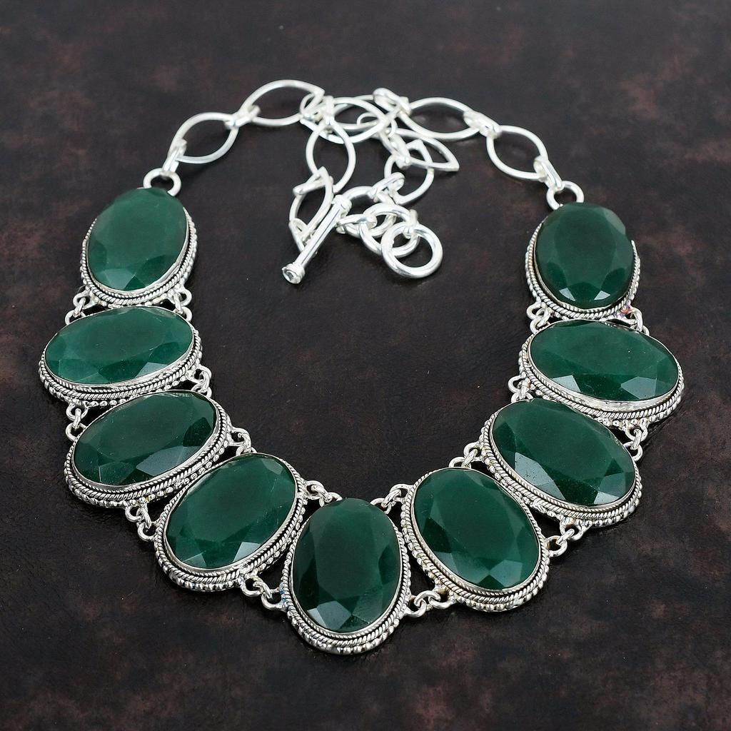 Fasetowany Naszyjnik ze Szmaragdu Zambijskiego Biżuteria z Kamieni Szlachetnych Srebro Próby 925 Regulowany Łańcuszek Ręcznie Robiony Naszyjnik Vintage Prezenty na Zaręczyny