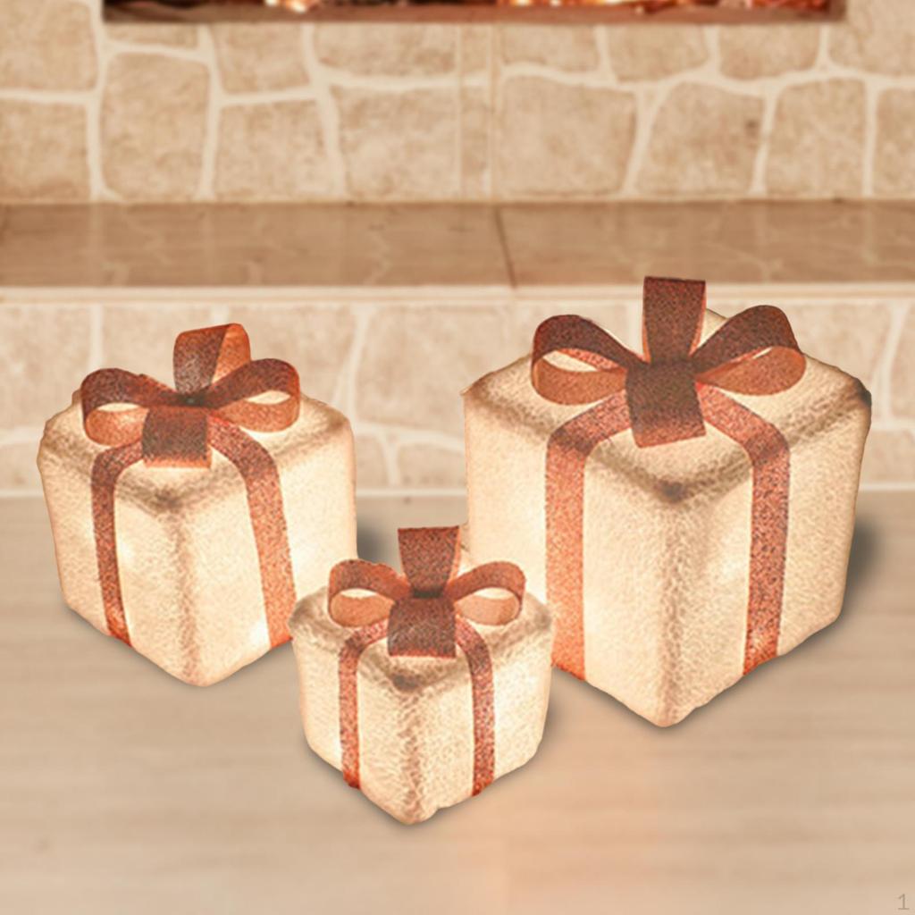 Zestaw 3 podświetlanych dekoracji pudełek prezentowych