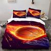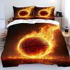 Koszykówka Ogień Zestawy Poszewek na Kołdrę Zestaw Pościeli dla Dzieci Druk 3D Ultra Miękka Poszwa na Kołdrę dla Chłopców (1 Zestaw Poszwy na Kołdrę+2 Poszewki na Poduszki)