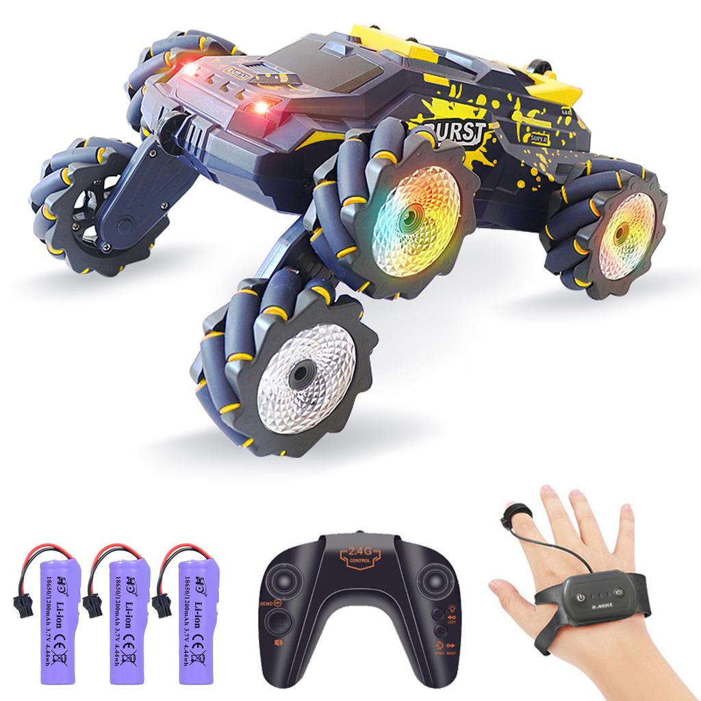Dwa tryby zdalnego sterowania: Zdalnie sterowany samochód do driftu jest wyposażony w pilot zdalnego sterowania o częstotliwości 2,4 GHz i zegarek reagujący na gesty, dzięki czemu dzieci mogą wybierać różne metody sterowania, co dodaje zabawie zabawy i stawia przed nimi nowe wyzwania.