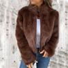Kurtka damska jesień zima vintage ciepła ze sztucznego futra lekka cienka luźny kołnierz stójka długi płaszcz z długim rękawem swobodna odzież wierzchnia zamek błyskawiczny