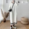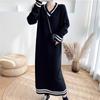 GMXIA Damski sweter z długim rękawem i dekoltem w serek, duży rozmiar, jesień i zima, nowy, luźny z płaszczem, sukienka dzianinowa do kolan