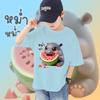 Moo Deng Tiny Baby Hippo Star Thailand Cute Pygmy Hippo Unisex Dziecięcy Chłopiec Dziewczynka T-shirt Arbuz Nadruk Krótki Rękaw Okrągły Dekolt