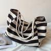 Blue Striped Canvas Tote Bag Women Harajuku Aesthetic Large Capacity Casual Shoulder Bags Female Retro Shopping Bag New