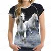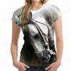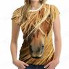 Modny damski t-shirt z nadrukiem 3D z koniem, letni, żywy, oversize, z okrągłym dekoltem, z krótkim rękawem, top, t-shirt, ubrania ze zwierzętami, t-shirt dla dziewczyny