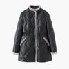 Damski Zimowy Płaszcz Średniej Długości ze Skóry ze Szwami Stójka Kołnierz z Imitacji Futra Norki Bawełniana Kurtka Temperament Ciepły Płaszcz