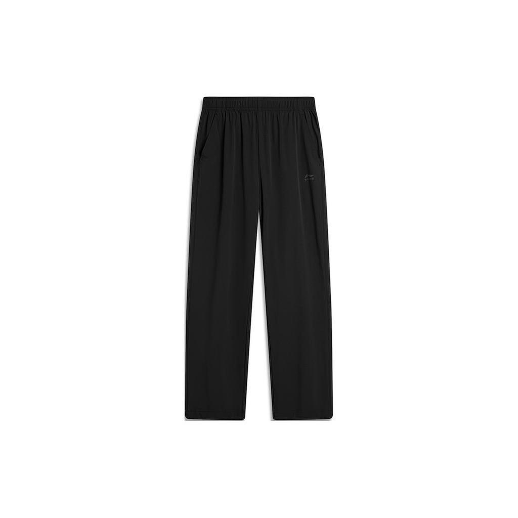Li Ning Sports Lifestyle Series Solid Color Elastic Waist Straight Leg Knit Sports Pants Women Pants Black AYKU372-1