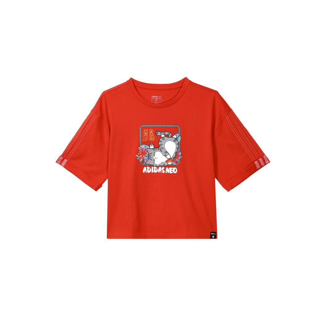 Adidas Neo Cny Series Casual Sports Printed Dopamine Round Neck Short Sleeve Drop Shoulder T-Shirt Women T-Shirt Red GP5739