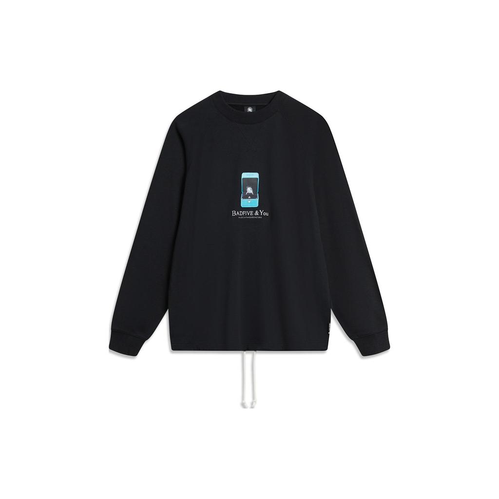 Li Ning Loose Fit Round Neck Letter And Number Print Long Sleeve Sweatshirt Unisex sweatshirt Black AWDTC87-4