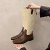 Vintage Women Western Knee High Boots Fashion Mix Colors Shoes Autumn Winter Laides Concise Long Botas De Mujer