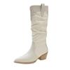 Nowe Damskie Kowbojki Western Jesień Zima Szpiczasty Nosek Szycie Patchwork Średni Obcas Długie Buty Damskie Styl Etniczny