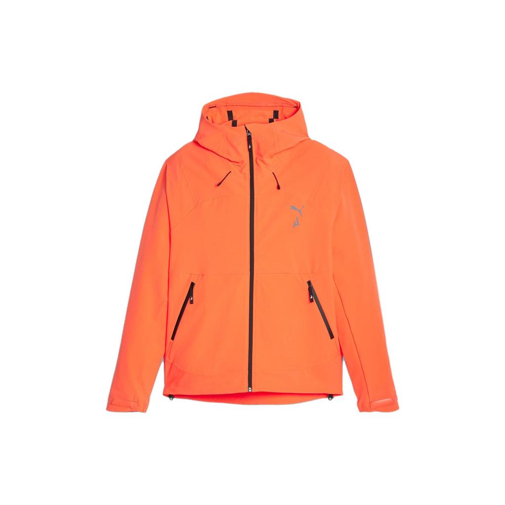 Puma Kurtka do biegania typu softshell Seasons z nadrukiem logo, z kapturem, zapinana na zamek, tkana kurtka męska, kurtka pomarańczowa 524108-60
