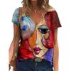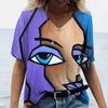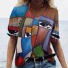 T-shirt damski sztuka abstrakcyjna nadruk twarzy dziewczęca odzież 3D ponadgabarytowe klasyczne topy z krótkim rękawem moda damska casualowe ubrania uliczne