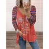 Wiosenno-jesienny damski sweter z dekoltem w serek, nadrukiem i długim rękawem, luźny top