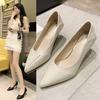Moda 2024 Nowe szpiczaste francuskie buty na niskim obcasie, damskie celebrytki sezon wiosenno-jesienny, styl z lekkim wycięciem, modne buty na wysokim obcasie