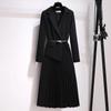 Wiosna Jesień Sukienki Damskie Moda Garnitur Kołnierz Przeszycia Fałszywe Dwuczęściowe Elegancka Damska Długa Sukienka Biurowa Vestidos
