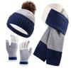 3 szt. Kolorowy blok dzianinowy czapka szalik rękawiczki kombinacja, zimowy gruby ciepły zestaw, idealny na zajęcia na świeżym powietrzu i do codziennego użytku