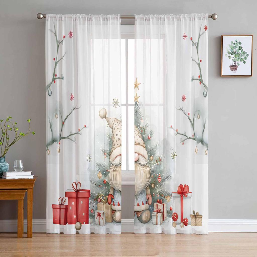 Christmas Dwarf Tree Watercolor Sheer Curtains Modern Gauze Curtain for Living Room Bedroom Voile Yarn Curtains