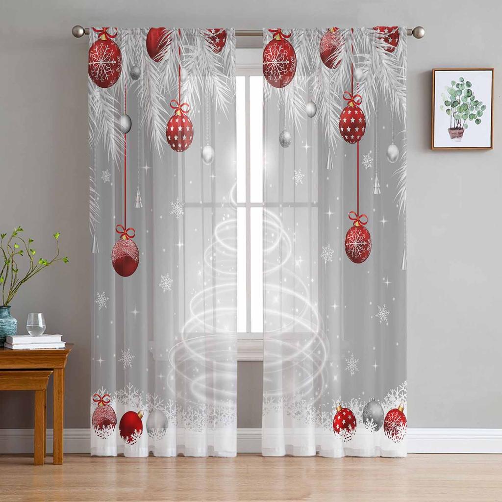 Boże Narodzenie i Zima Srebrne Liście Cedru Zasłony Do Salonu Sypialni Dekoracja Domu Okno Voile Tiul Zasłony Zasłony