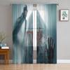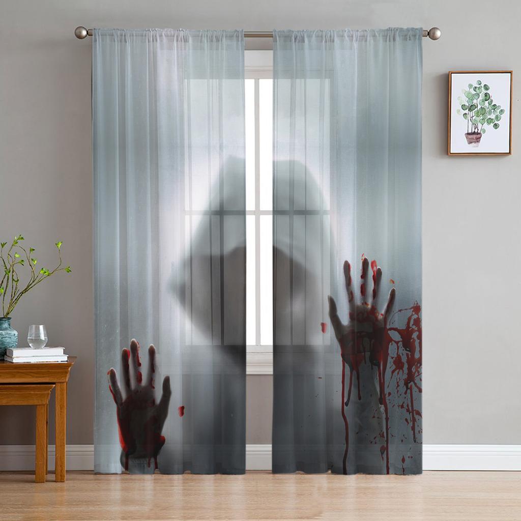 Krwawy odcisk dłoni Horror sylwetka przezroczyste zasłony do salonu nowoczesna zasłona typu woal sypialnia zasłony tiulowe zasłony okienne