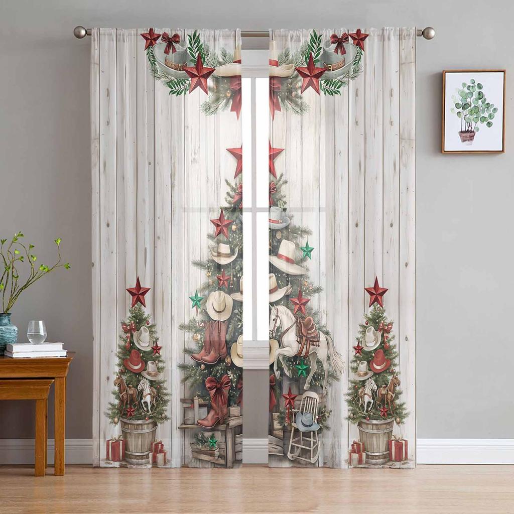 Christmas And Winter In The West Curtains For Living Room Bedroom Home Decoration Window Voile Tulle Curtain Drapes
