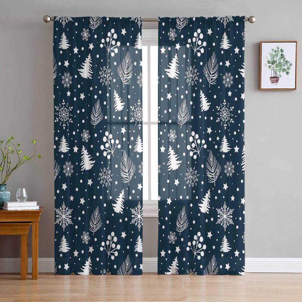 Christmas Hand Drawn Sketch Curtains For Living Room Bedroom Home Decoration Window Voile Tulle Curtain Drapes