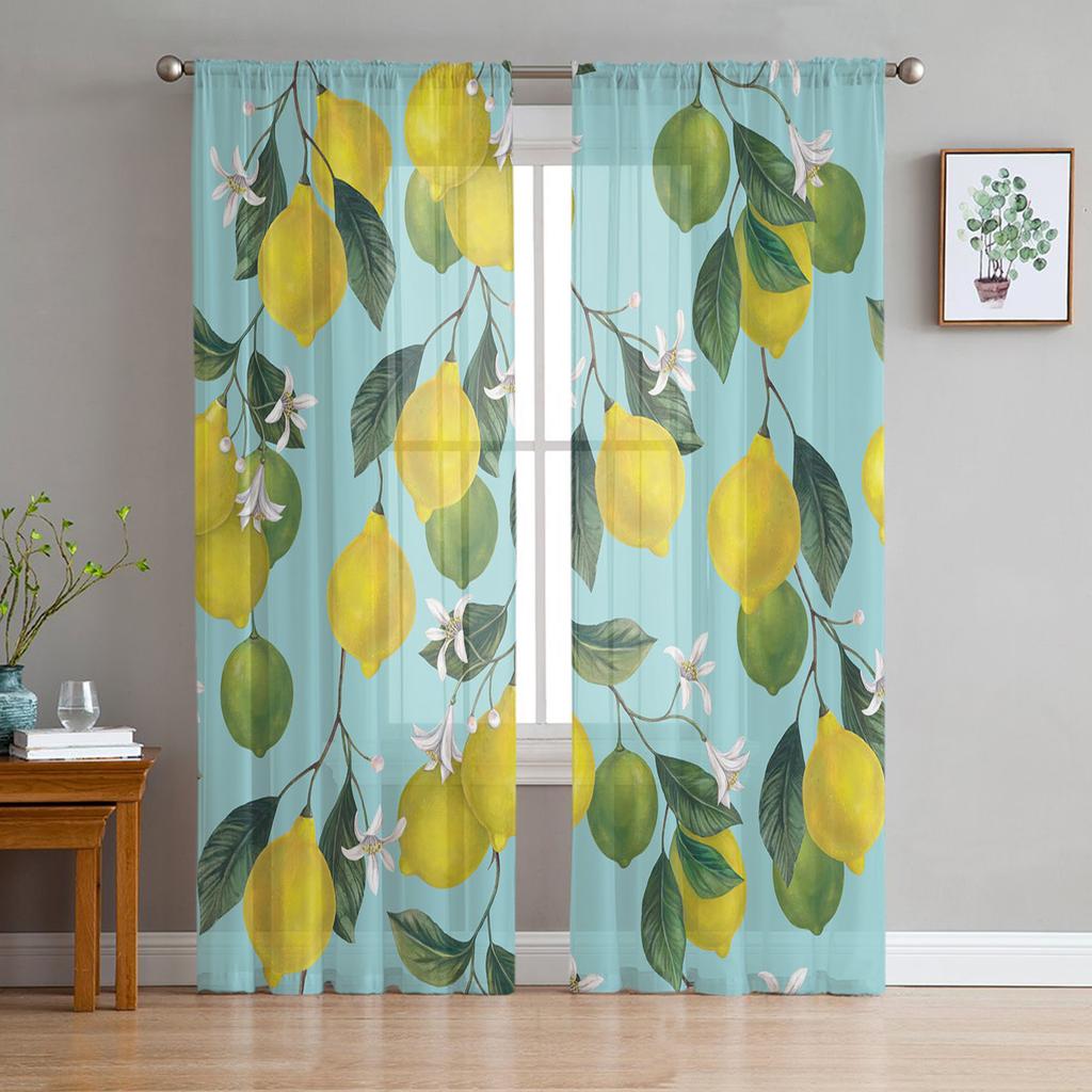 Yellow Lemon Green Leaf Fruit Tulle Sheer Window Curtains for Living Room Kitchen Children Bedroom Voile Hanging Curtain
