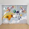 2 szt. Niestandardowe Kreskówkowe Zasłony z Motywem Kosmosu, Rakiety Kosmicznej dla Dziecięcej Sypialni, Salonu, Dekoracji Okiennych, Zasłony Kuchenne