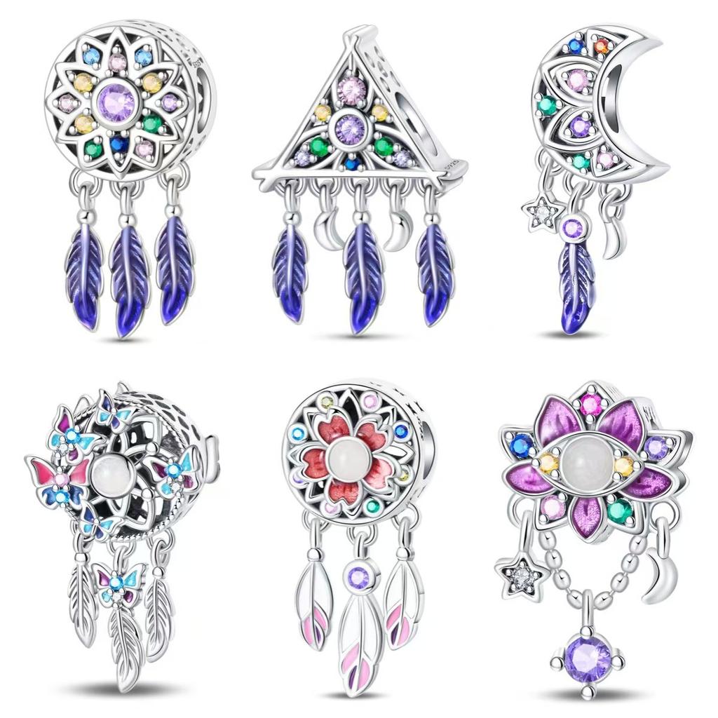 Nowy Srebro 925 Oryginalny Łapacz Snów Sieć Koraliki Księżyc Zawieszka DIY Styl Akcesoria do Biżuterii Bransoletka Charms Biżuteria Prezent
