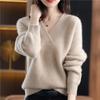 Jesień Zima Jednolity Kolor Dekolt w Serek Dzianinowe Swetry Dla Kobiet Luźny Wyszczuplający Dzianinowy Podstawowy Pokrowiec Gruby Sweter