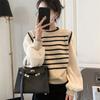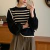 YYFS Damska moda swobodna jesień zima paski nadruk długi rękaw o-neck swetry