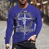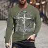 Mens T Shirt Autumn Long Sleeve Top Lion Pattern Clothing Casual O Neck Oversized Cross Print Pullover Autumn Mens T Shirt