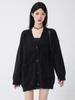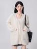 Szary jesienno-zimowy dzianinowy kardigan damski luźny, miękki i elastyczny sweter w stylu casualowym z kołnierzykiem w serek