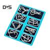 Zestaw zawiera 8 wymagających łamigłówek pierścieniowych o różnym poziomie trudności, które pozwalają oderwać się od ekranu i zaangażować umysł w rozwiązywanie problemów. Popraw koordynację wzrokowo-ruchową i sprawność umysłową dzięki tym tradycyjnym chińskim zabawkom edukacyjnym odpowiednim dla osób w każdym wieku.