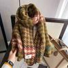 Vintage Czerwony Szal w Kratę Tysiąca Ptaków Damski Zimowy Studencki Ciepły Szal