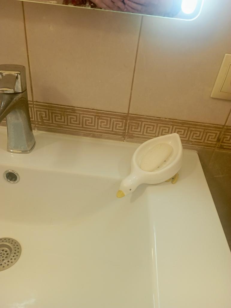 Fajny gąsek. Bardzo organicznie wygląda na umywalce, woda spływa z dzioba, mydło - suche😊👍