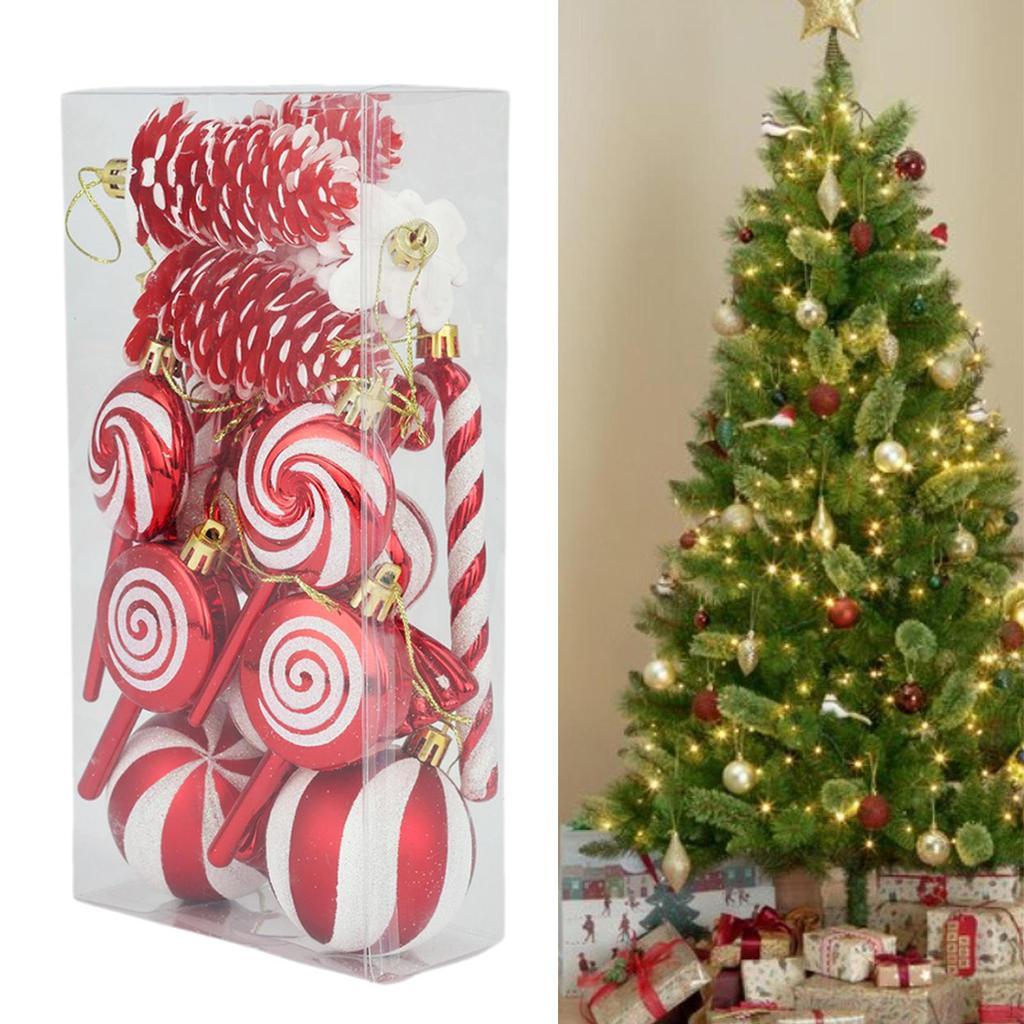 - 【Christmas Ornaments】: Package includes 15pcs adorable and unique Christmas Ornaments, different styles: 2 balls, 4 pine cones, 3 candies, 2 canes, 4 lollipops (2 types)