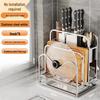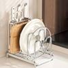 - 【Wielofunkcyjny】: Stojak na przybory kuchenne ze stali nierdzewnej to konstrukcja 3 w 1, która łączy w sobie uchwyt na pokrywkę garnka, blok na noże i uchwyt na deskę do krojenia w 1 wygodnym rozwiązaniu do przechowywania
