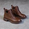 Modne damskie botki do kostki ze skóry bydlęcej, płaskie skórzane buty w stylu vintage, zimowe botki do kostki, platforma na grubej podeszwie, sznurowane