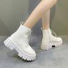 Modne damskie buty jesień/zima Nowa koreańska wersja Modne grube podeszwy sznurowane buty z podnoszącą wysokością na platformie z zamkiem błyskawicznym