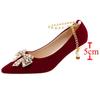 Fashion Red Pearl Bowknot Wedding Party Shoes for Women String Bead Thin Heels Pumps Ladies Ankle Strap Pointed Toe High Heels Shoes