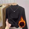 Women's One-piece Velvet Warm Semi High Neck Knitted Sweater with Long Sleeves Inside Casual Loose Pullover for Autumn and Winter