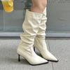 Moda 2024 Modne buty damskie Wsuwane Damskie Kozaki Zimowe Utrzymujące Ciepło Szpiczasty Nosek Jednolite Seksowne Szpilki lub Cienkie Obcasy Kozaki Zapatos