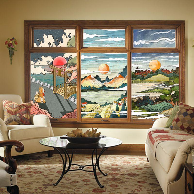 Japoński Styl Statyczna Folia Okienna Prywatność Matowa Półprzezroczysta Naklejki na Szyby Okienne Toaleta Łazienka Folie na Okna Witrażowe