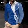 Nowy cyfrowy nadruk męski jesień długi rękaw kolor blokowy sportowy casualowy modny kołnierzyk polo gradient męski top