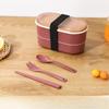 Dwuwarstwowy przenośny lunchbox z widelcem i łyżką, mikrofalowe pudełka bento, zestaw naczyń obiadowych, pojemnik do przechowywania żywności