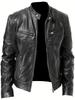Męska skórzana kurtka motocyklowa Slim Fit Short-coat Lapel PU kurtki jesień nowy zamek błyskawiczny stojak wiatroszczelna skórzana kurtka męska odzież